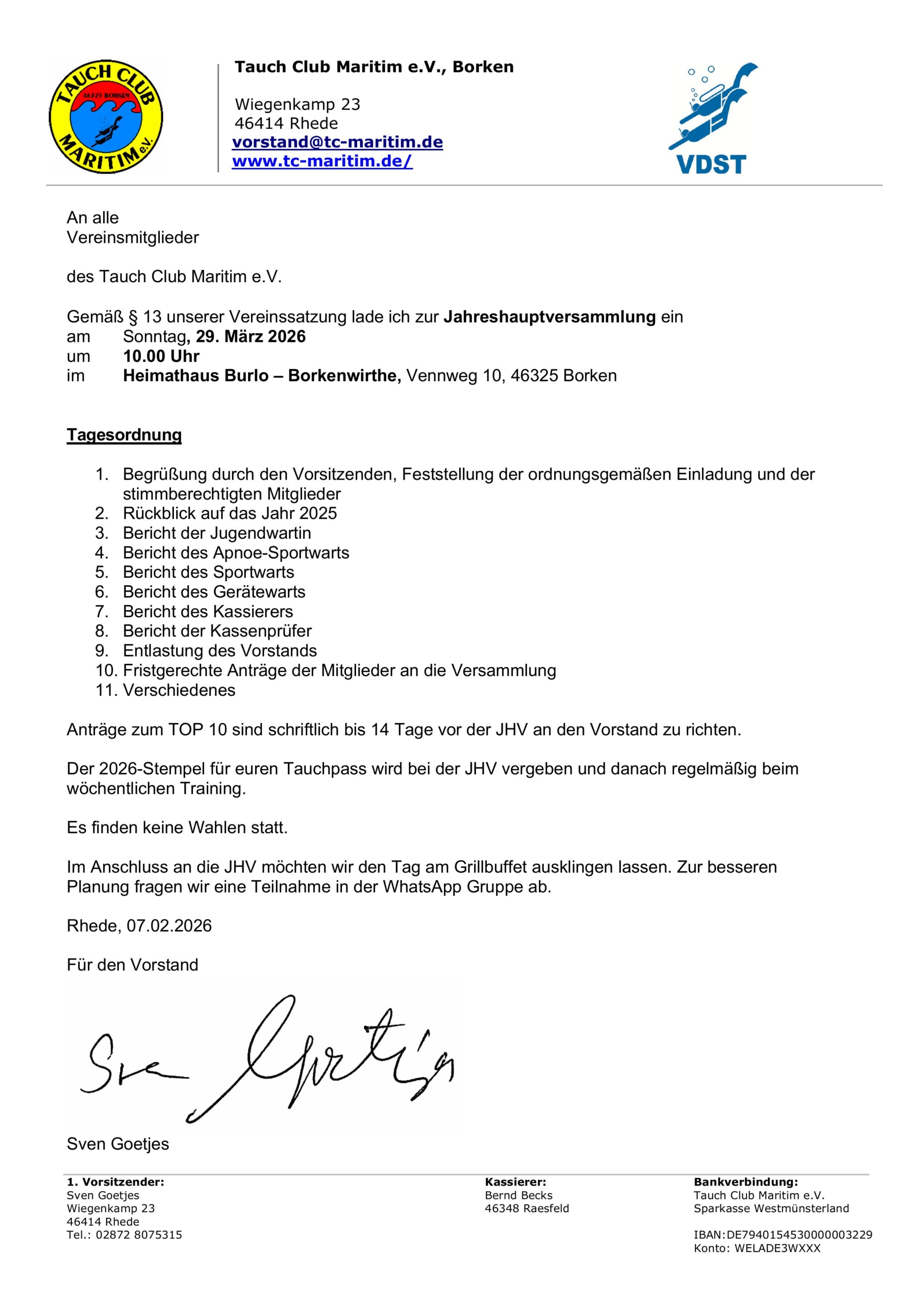 Einladung zur Jahreshauptversammlung 2026